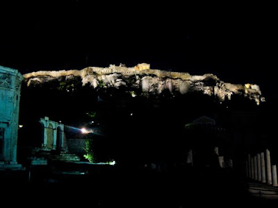 But, what was really nice was the opportunity to walk around the city at night. Lots of hustle and bustle in the main tourist area of Plaka. And some wonderful monuments that projected their former (and current) glory well. Walking beneath the Acropolis lit up at night on a quiet street away from the shopping and eating frenzy of Plaka is great therapy for erasing bad images of Athens.